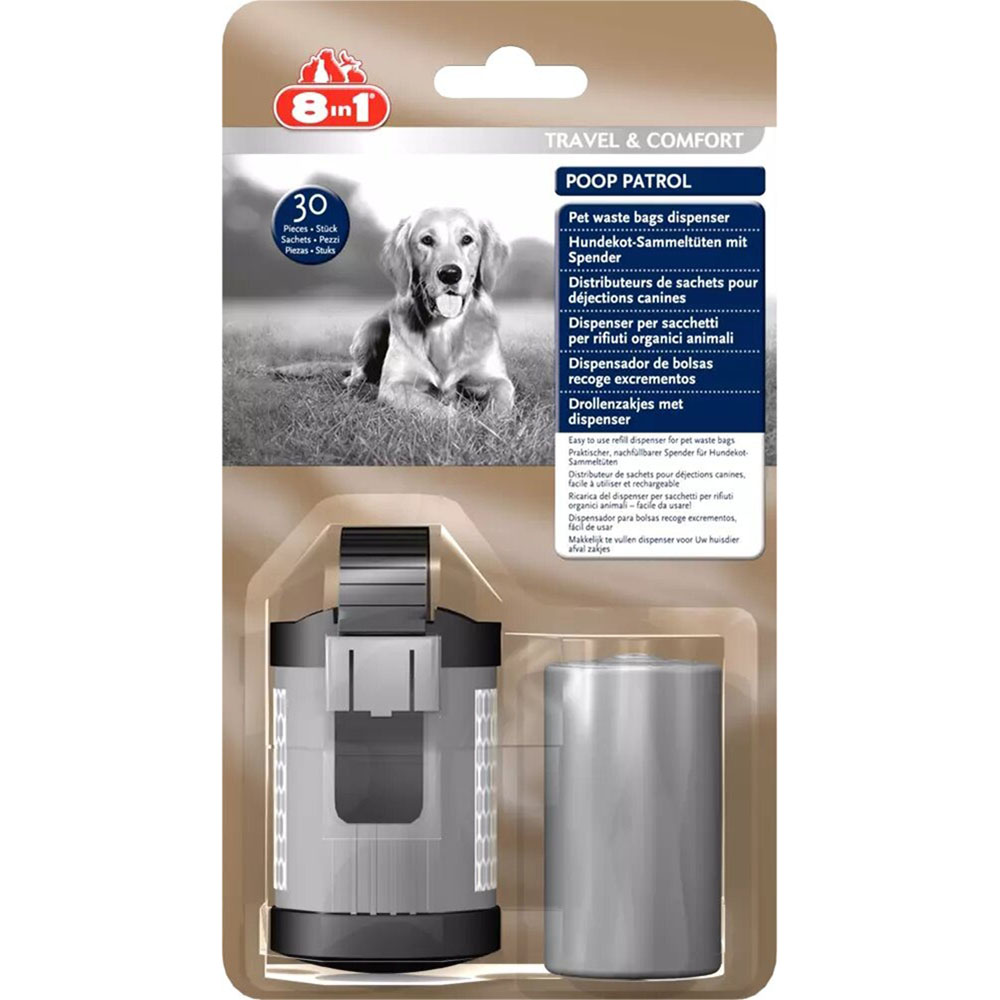 8in1 Poop Patrol bags are tearproof bags for dog poop which come in a handy dispenser. They are perfect when on the move, making it easier for you to dispose of your dog’s poop properly while out walking or on a journey and to keep the environment clean for people and animals. The dispenser guarantees one bag at a time, is fitted with an adjustable rubber strap and fits to any lead. The reflectors on both sides also offer additional protection when walking in the dark. Poop bags with handy dispenser Can be fixed to the lead for easy and convenient use With reflectors for nighttime safety8in1 Poop Patrol Dispenser & 30 Refill Bags