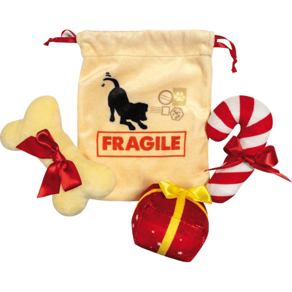 Christmas package with 3 plush games (bones, candy canes and a small gift).