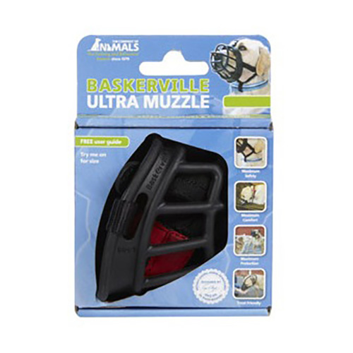 This lightweight muzzle features a basket design that gives all-around protectionIt also allows unrestricted panting and drinkingSafety strapping ensures the muzzle will always remain securely in place and features two additional points of secure attachmentMade from extremely tough and durable, yet soft rubberThe 16-inch inside circumference of muzzle is perfect for dogs snout. Base strap to tip of rubber and neck strap measures 10-inch and 20-inch length respectively