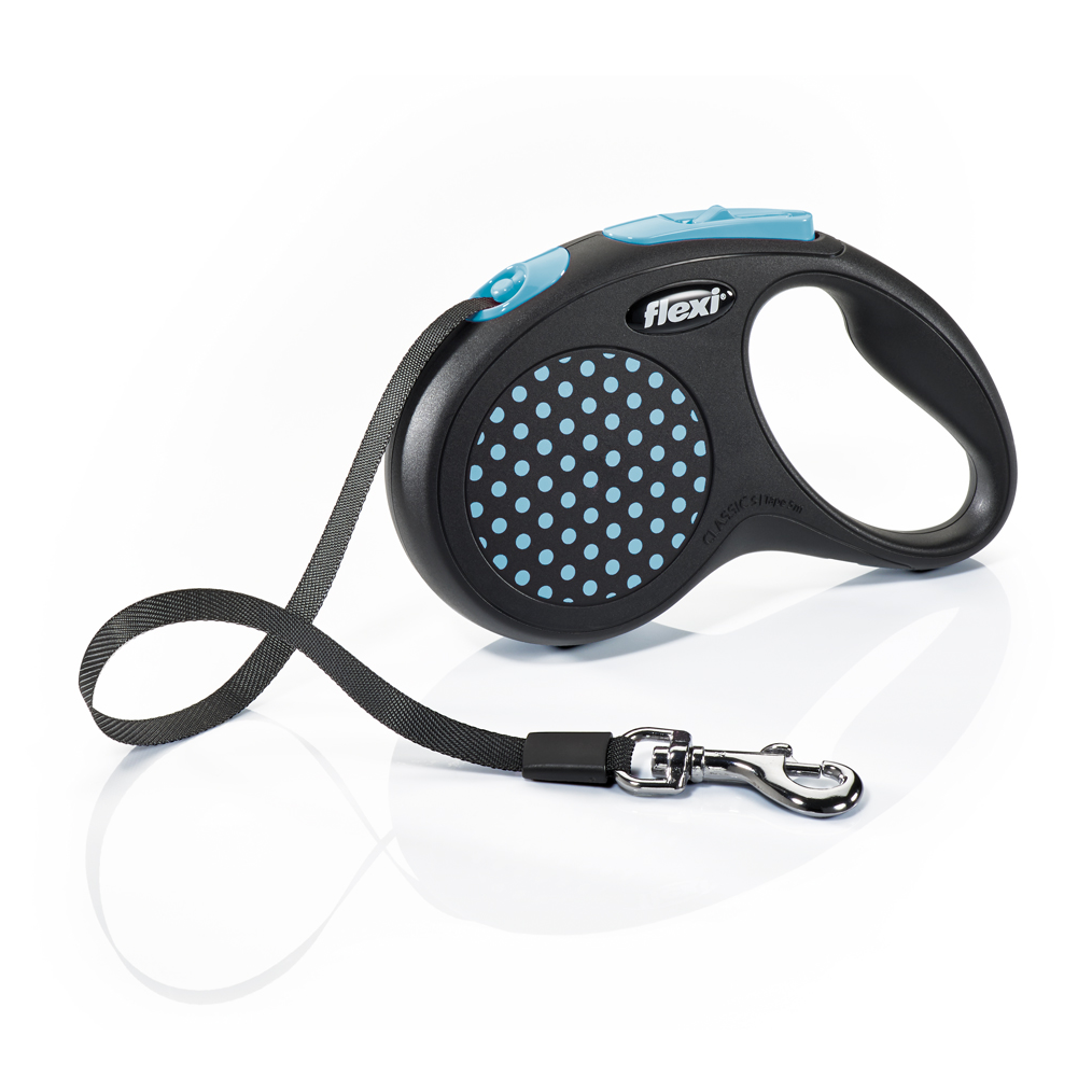 Design S Tape 5 m5m tape leash For dogs up to max. 15kg Comfortable short-stroke braking system Chromed snap hook Can be customized with Multi Box Product weight: 190g approx.