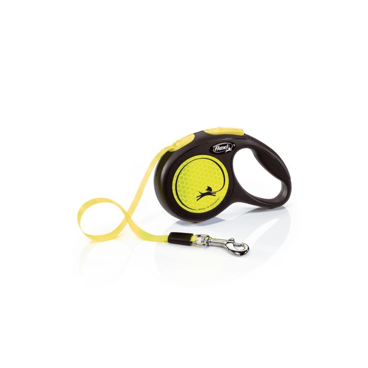 flexi New Neon Reflect retractable lead size XS, tape 3 m, for dogs up to 12 kg, black/neon