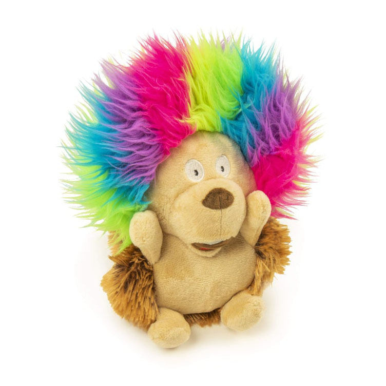 Godog® Silent Squeak™ Crazy Hairs Hedgehog With Chew Guard Technology™ Durable Plush Dog Toy, Large