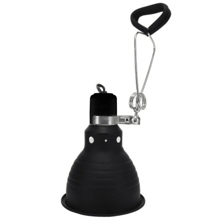 The Clamp Lamp is the right choice for a safe and reliable lamp holder for your terrarium. The heat-resistant ceramic socket with E27 thread is suitable for all standard incandescent lamps, radiant lamps and UV lamps. The robust aluminium lampshade is fitted inside with a highly reflective coating to get the best possible effect when lighting the terrarium. With the attached mounting clip and its 360 ° rotatable ball joint, the Clamp Lamp can be attached to one side of the terrarium in a targeted way to optimally illuminate the terrarium. The mounting brackets on the mounting clip guarantee a secure hold. With the help of the switch, the Clamp Lamp can be switched on and off easily. Alternatively, a timer switch such as the HOBBY Terra Timer pro (art. no.: 36155) can be used for automatic control. With the Clamp Lamp Protector available as an optional extra, the terrarium inhabitants are guaranteed the highest level of protection against burning.