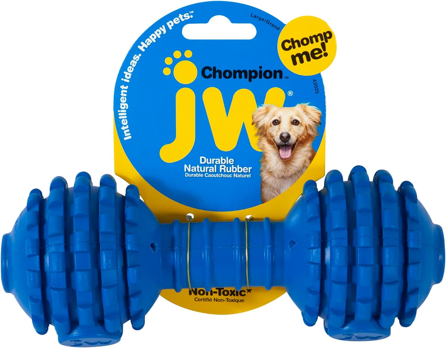 Dog Chew Toys For Aggressive Chewers: JW Pet Chompion dog toys for large dogs feature textured bumps that clean plaque from teeth before it forms tartar to promote healthy teeth and gums. Heavy duty dog toy is ideal for fetch & tug-of-war