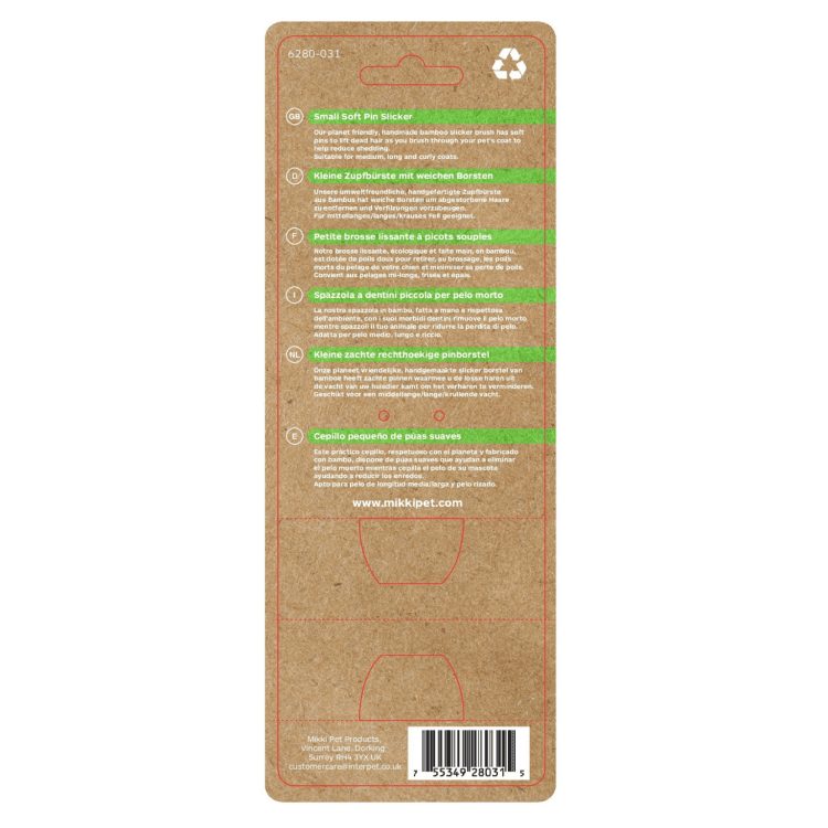 Our earth-friendly, handmade bamboo slicker brush has soft pins to lift dead hair as you brush through your pet’s coat to help reduce shedding. Suitable for medium, long and curly coats.