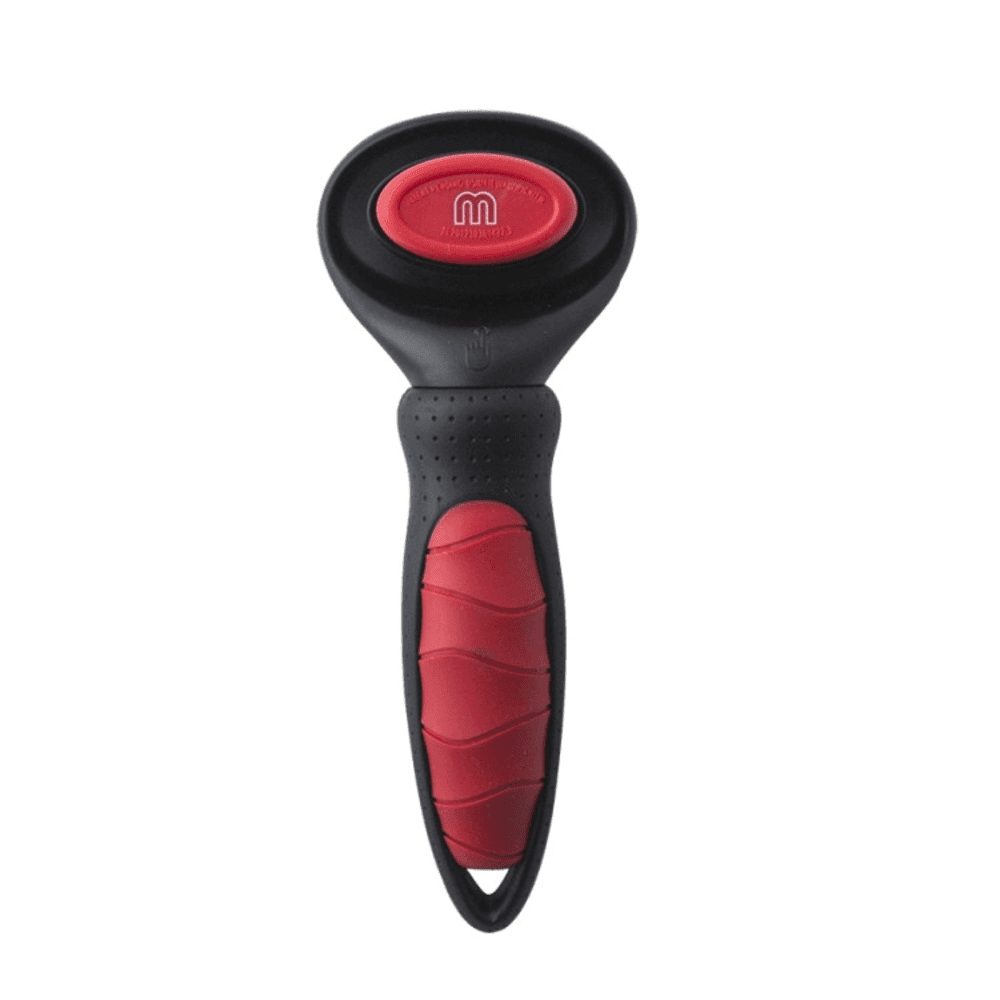 - Push button quickly removes dead hair from the slicker.