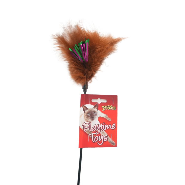 Cats love hunting, especially if there are brightly coloured feathers involved! This cheerful cat waggler has real feathers and an enticing ribbon.