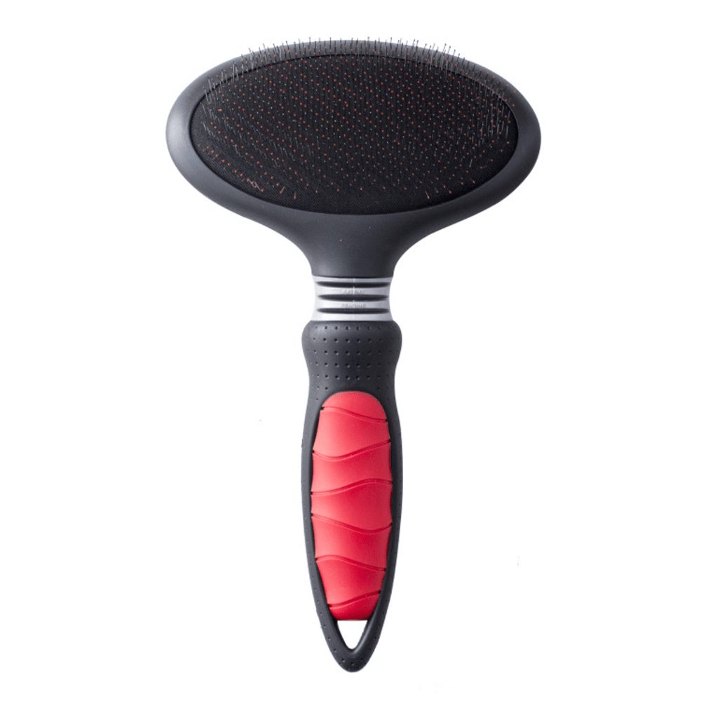 The Mikki Soft Pin Slicker has specially shaped slicker pins which are mounted on an air cushion to enhance grooming action & reduce any excessive brushing force.