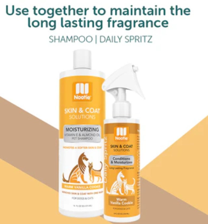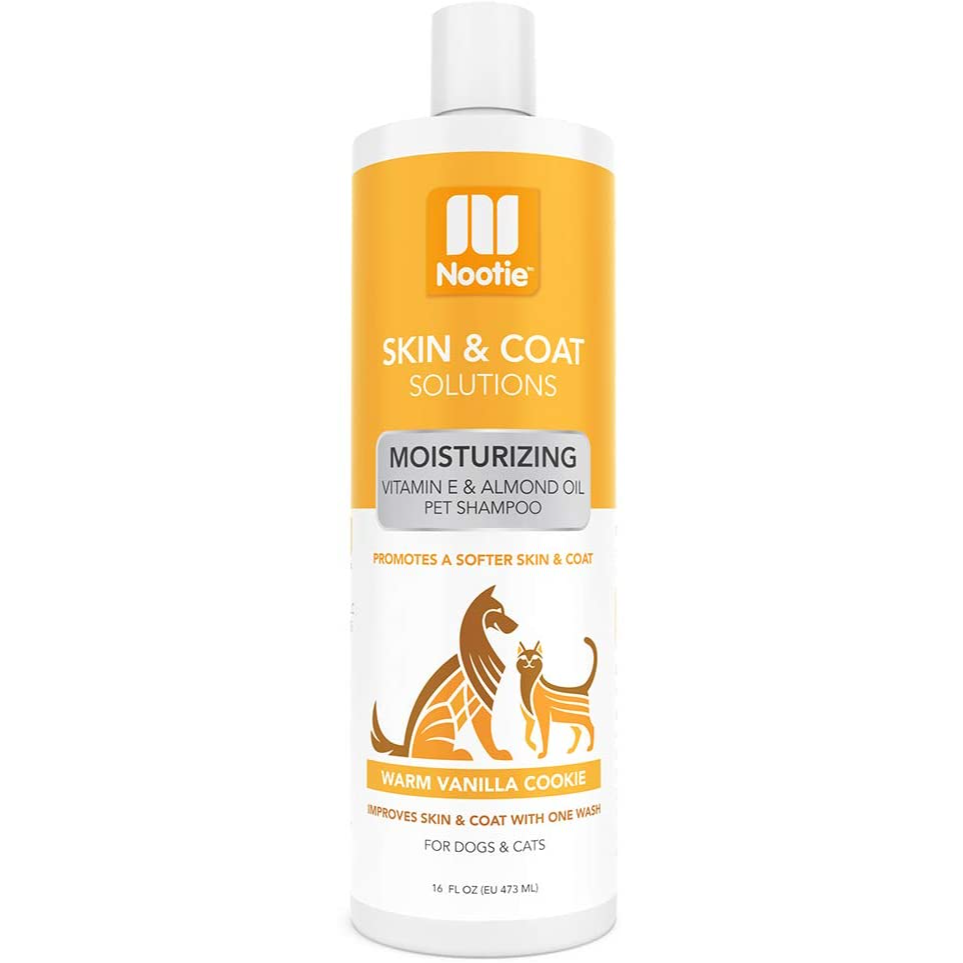 Nootie Moisturizing Vitamin E & Almond Oil Pet Shampoo contains essential fatty acids for a soft, shiny coat. It is infused with the sweet delicious scent of Warm Vanilla Cookie and gently formulated to improve the health of your petβs skin & coat. With just one wash, you will see, feel, and smell the difference.