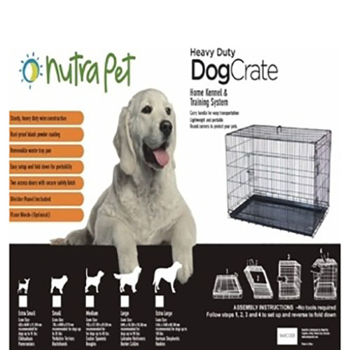 Nutrapet Dog Crates help reduce housebreaking time and provide the perfect home for pets.Two easy-locking doors. The leak-proof removable tray makes clean up quick and easy. Collapsible design is great fortraveling. Divider panel is included so crate can “grow” as the puppy does. Available in 5 sizes.Floor Mesh is SOLD Separately as an accessory
