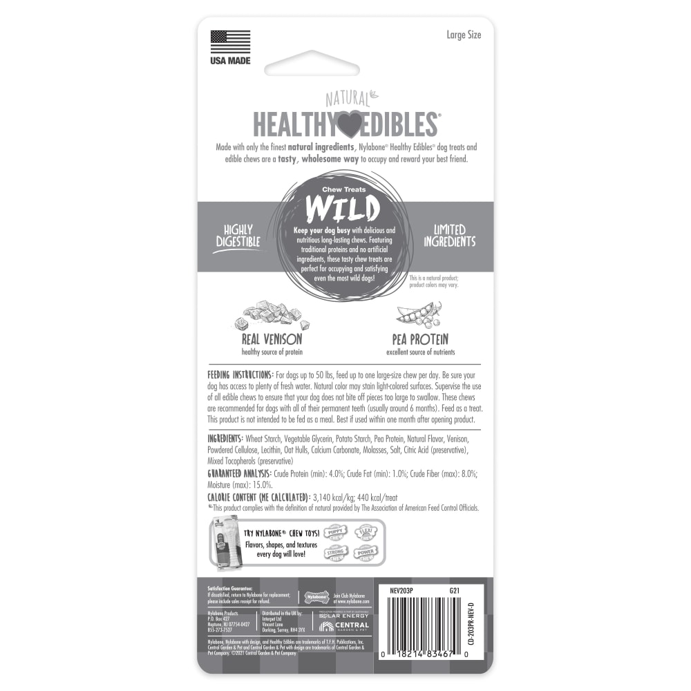 Bring out your dogβs inner adventurer with Nylabone Healthy Edibles Wild Venison Chew Treats β a wholesome, USA-made snack inspired by the flavors of the wild!