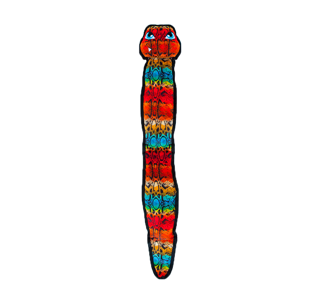Outward Hound Invincibles Tough Skinz Cobras are made with durable Invincibles Squeakers that Keep Squeakin’ If Punctured and feature exotic animal skin prints and patterns! Tough Skinz are as durable as they are adorable and sport a colorful top layer of strong material backed with our super strong Chew Shield. With strong stitched seams and tough construction, these durable plush toys are great for super chewers and players.SCALES AND TAILS: Great for tough chewers and aggressive players, this extra long Skinz Cobra is as tough as it looks! Inspired by slippery cobra scales and long snake tails, this toy is sure to bring big fun to your dog’s playtime.SNAKEBITE STRONG: Each Outward Hound Invincibles Skinz Cobra is made with a durable chew shield and a heavy-duty binding that adds an extra layer of strength during play, tug and chew time with your dog.WILD FUN: Invincibles Skinz Cobras are totally tough for playtime and built with Invincibles Squeakers that Keep Squeakin’ When Punctured; plus, their printed patterns extra-long length is inspired by real cobras! Product SpecsInvincibles Squeakers Keep Squeakin’ If PuncturedFeatures Outward Hound Chew ShieldDurable stitched seamsRealistic reptile printsHeavy-duty bindingProduct Dimensions:X-Large32.5″L x 5.1″W x 2″HAvailable in 2 prints