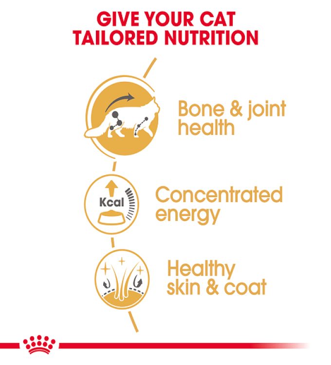 ROYAL CANIN® Maine Coon Adult in Gravy is specially formulated with the needs of this particular breed in mind. You can rest assured that catering to your Maine Coon’s nutritional requirements is just as important to us as it is to you. Particular attention must be given to support the general health and condition of its joints. ROYAL CANIN® Maine Coon Adult in Gravy is enriched with Taurine, DHA and EPA (Omega-3 fatty acids) to help maintain muscle and bone strength, as well as support healthy cardiac function. ROYAL CANIN® Maine Coon Adult in Gravy also contains a highly concentrated energy formula to provide your large cat with the energy levels it needs to complete its daily routines. The Maine Coon cat has a dense, semi-long coat with a fine, soft undercoat. The specific amino acids, vitamins, Omega-3 and Omega-6 fatty acids contained in ROYAL CANIN® Maine Coon Adult in Gravy will help maintain your cat’s skin and coat health. To cater to each cat’s preferences, ROYAL CANIN® Maine Coon Adult in Gravy is also available as dry food, with crunchy and tasty kibbles. If you’re considering mixed feeding, simply follow our feeding guidelines to ensure your cat gets an accurate amount of both wet and dry food for optimal benefit.