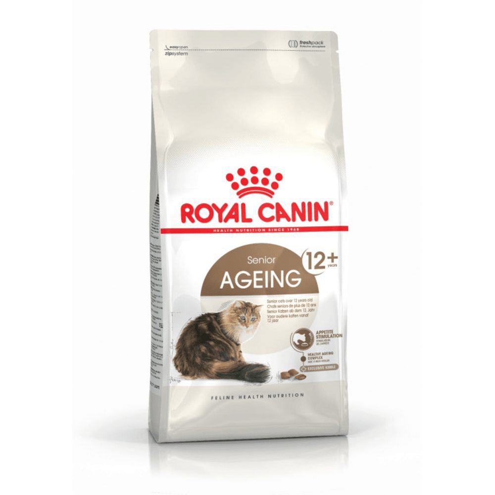 Ageing cats have different nutritional needs than their younger counterparts; that’s why it’s important to modify your cat’s diet as it ages, to ensure that those needs are being met and maintained. ROYAL CANIN® Senior Ageing 12+ is suitable for cats over 12 years of age and is specially formulated with the nutritional needs of senior cats like yours in mind. This food contains highly palatable kibble with a double texture (crunchy outside, soft inside) that helps to stimulate your senior cat’s general appetite. ROYAL CANIN® Senior Ageing 12+ contains a patented complex of antioxidants that support senior cats throughout the ageing process. Thanks to a moderate phosphorus level, ROYAL CANIN® Senior Ageing 12+ also helps to support healthy kidney function, which is highly beneficial in senior cats. To cater to each cat’s individual preferences, ROYAL CANIN® Senior Ageing 12+ is also available as wet food in either a delicious gravy or succulent jelly. If you’re considering mixed feeding, simply follow our feeding guidelines to ensure your cat gets an accurate amount of both wet and dry food for optimal benefit.