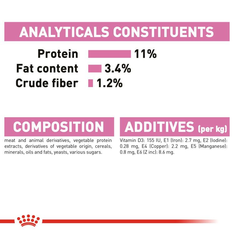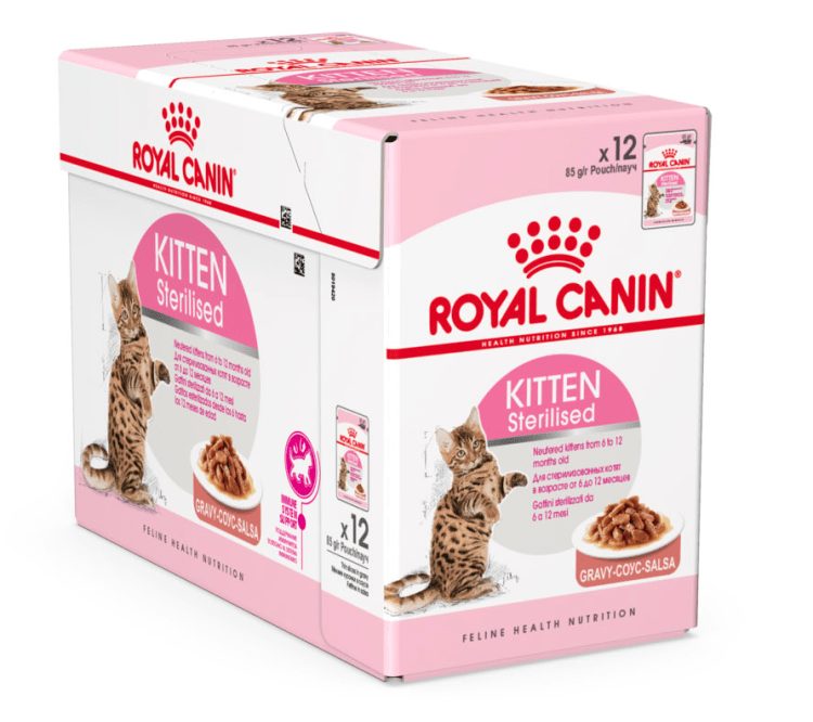 Specially formulated WET formula for neutered kittens from 6 to 12 months old. After neutering, the nutritional needs of kittens change. Kitten STERILISED helps limit the risk of excess weight gain thanks to an adapted content of fat and provides a balanced intake of nutrients (protein, calcium, phosphorus) for a harmonious end of growth. 12x85g