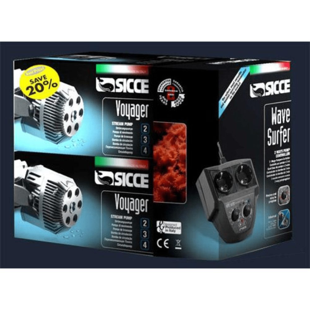 Get twice the head start to your aquarium and save up to 25% with this value combo pack that includes 2x Voyager 4 Stream pump and Wave Surfer controller