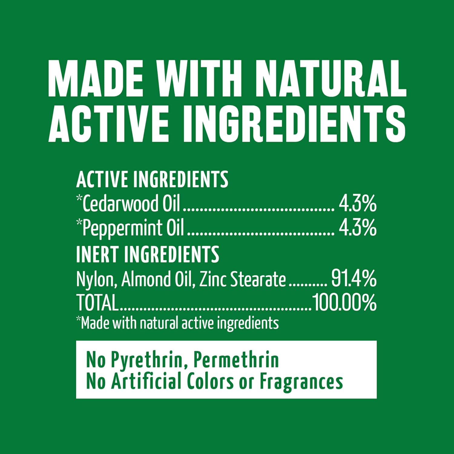 - Natural active ingredients: Contains ~4.3% cedarwood oil and ~4.3% peppermint oil in an almond oil base with zinc stearate for controlled release.