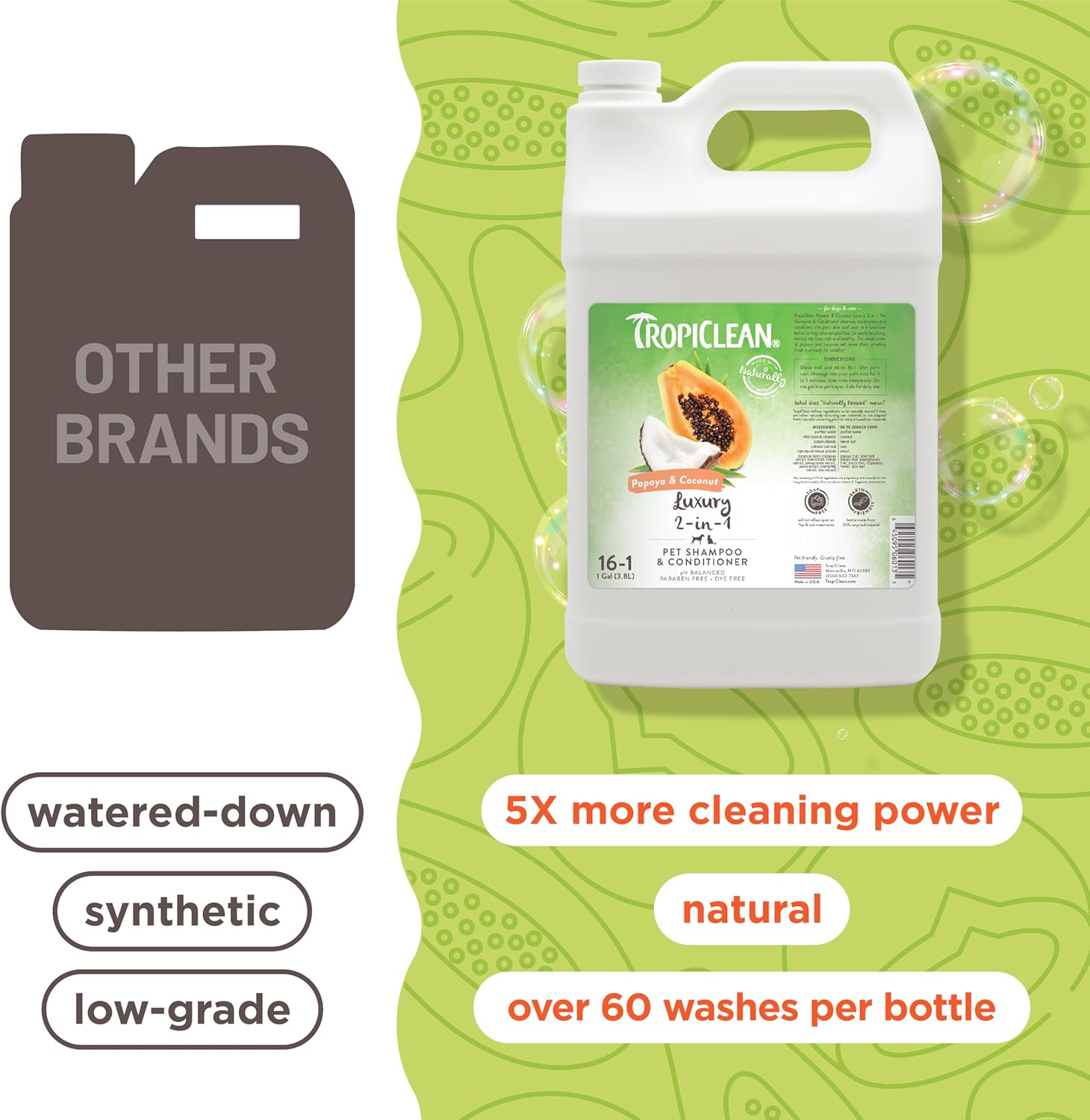 TropiClean Papaya & Coconut Luxury 2-in-1 Shampoo and Conditioner for Pets, 1 Gallon: