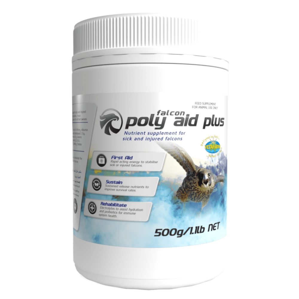 Sick birds do not eat or drink adequately. Poly Aid Plus provides immediate source of energy and protein via the special sustained release carbohydrates and proteins. The unique formula of Poly Aid Plus will quickly enter the body to give immediate life saving action. Poly Aid Plus can be used as a supplementary feed for birds recovering from trauma or disease with added Probotic to promote gut health. Vitamins: A, B1, B2, B3, B5, B6, B9, B12, C, D3, E, H and K, starch-maize, albumen, calcium gluconate, choline bitartrate, magnesium sulphate, potassium chloride, probotic, sodium chloride.