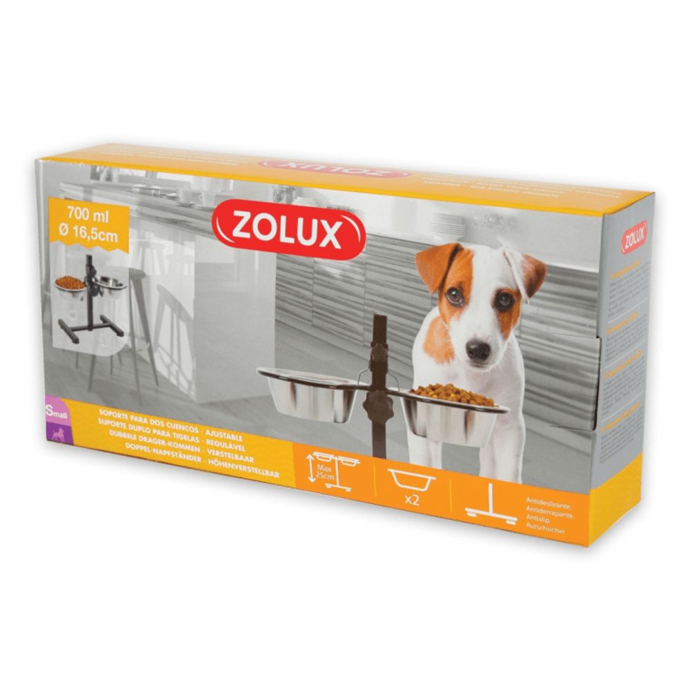 Adjustable stand height up to 46cm to fit every dog and give them maximum comfort when eating or drinking. Comes with 2 stainless steel bowls