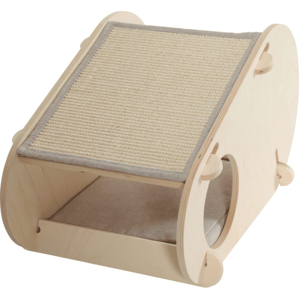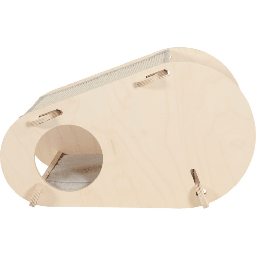 Scratcher for cats with FSC certified wooden structure. Made from natural braided sisal cord, ideal for sharpening your cat’s claws. Cats can hide or relax underneath the structure. The practical braided sisal part can be easily replaced, without having to take the whole product apart. Designed in France, made in Europe. Eco-designed product, durable, interlocking system to assemble.