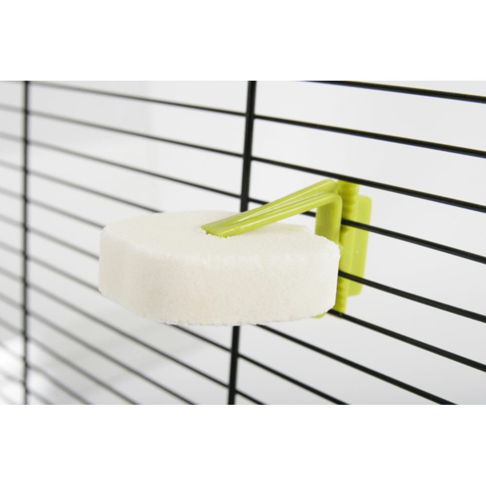 Apple gnawing stones can be attached to the bars of the cage with a plastic attachment. They are intended to help regulate the dental growth of your pet.