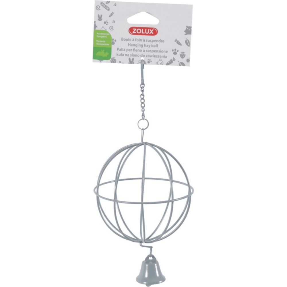 This hanging hay ball keeps hay clean and dry, protected from dirt on the ground.