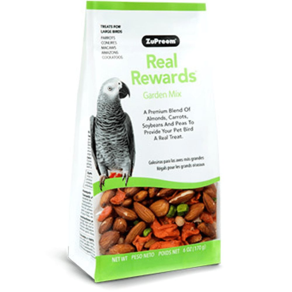 Real Rewards Garden Mix Treats for Large Birds offers a delicious mix of almonds, carrots, soybeans and peas to provide reward occasions for those special moments you share with your bird.